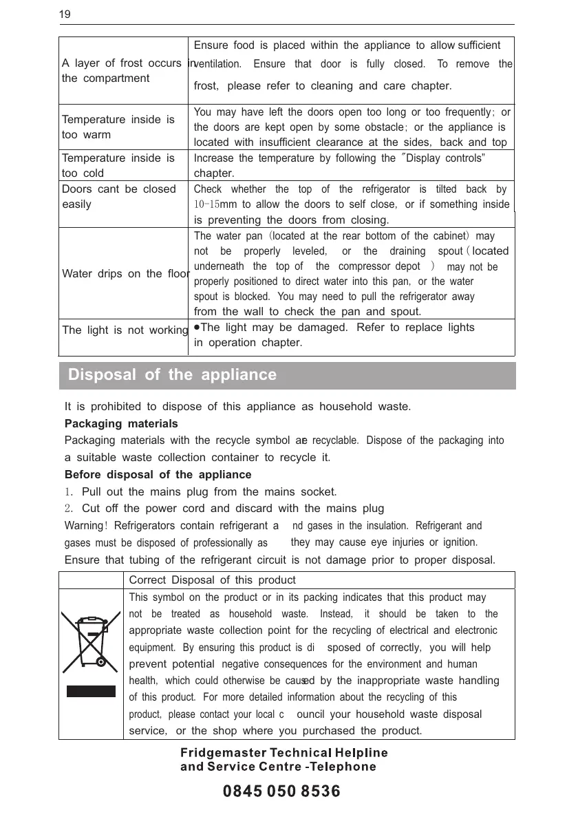 frost please refer to cleaning and care chapter, .
