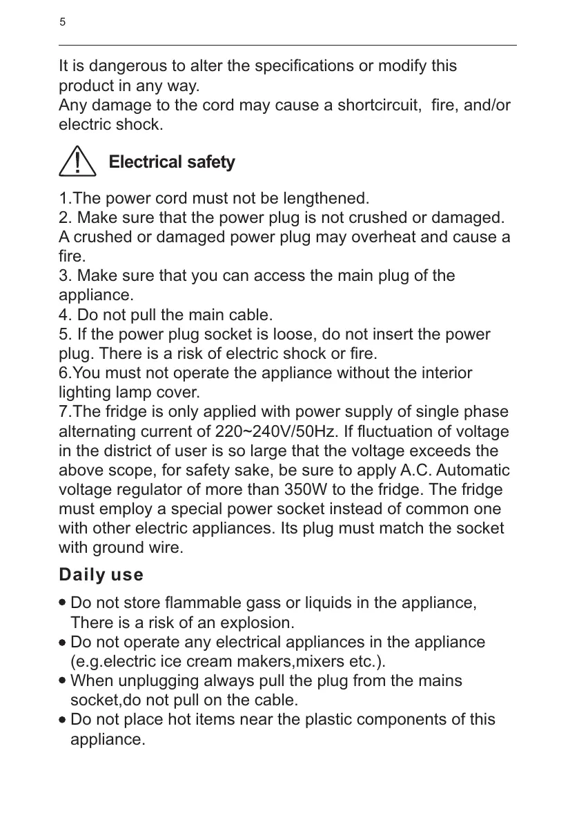 alternating current of 220~240V/50Hz. If fluctuation of voltage