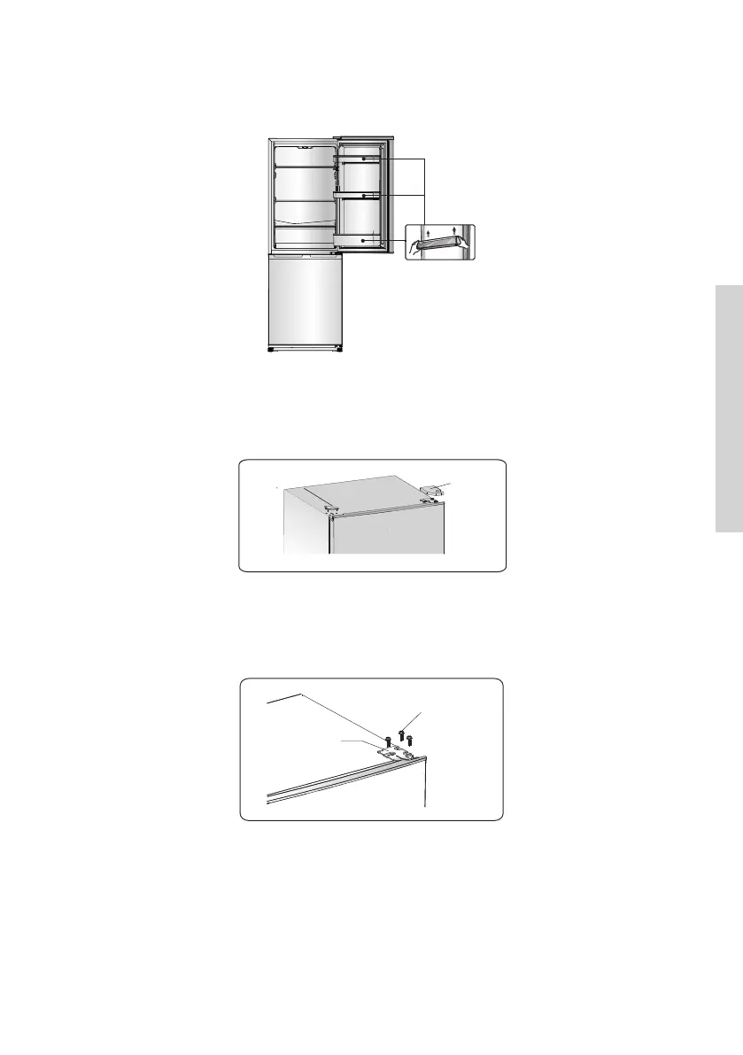 is at the top left corner of the refrigerator, and the upper hinge cover which is