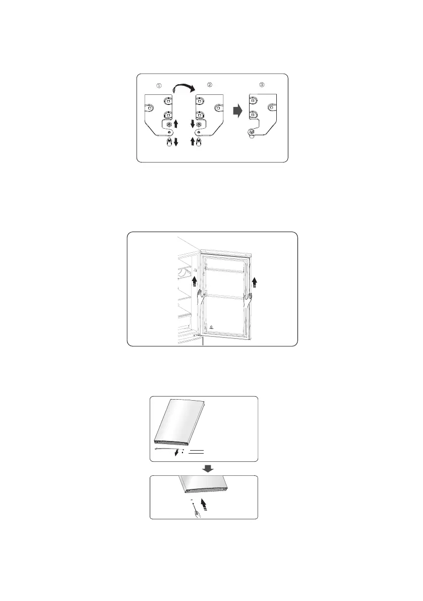 6. Place the upper door on a smooth surface with its panel upwards. Loose screw