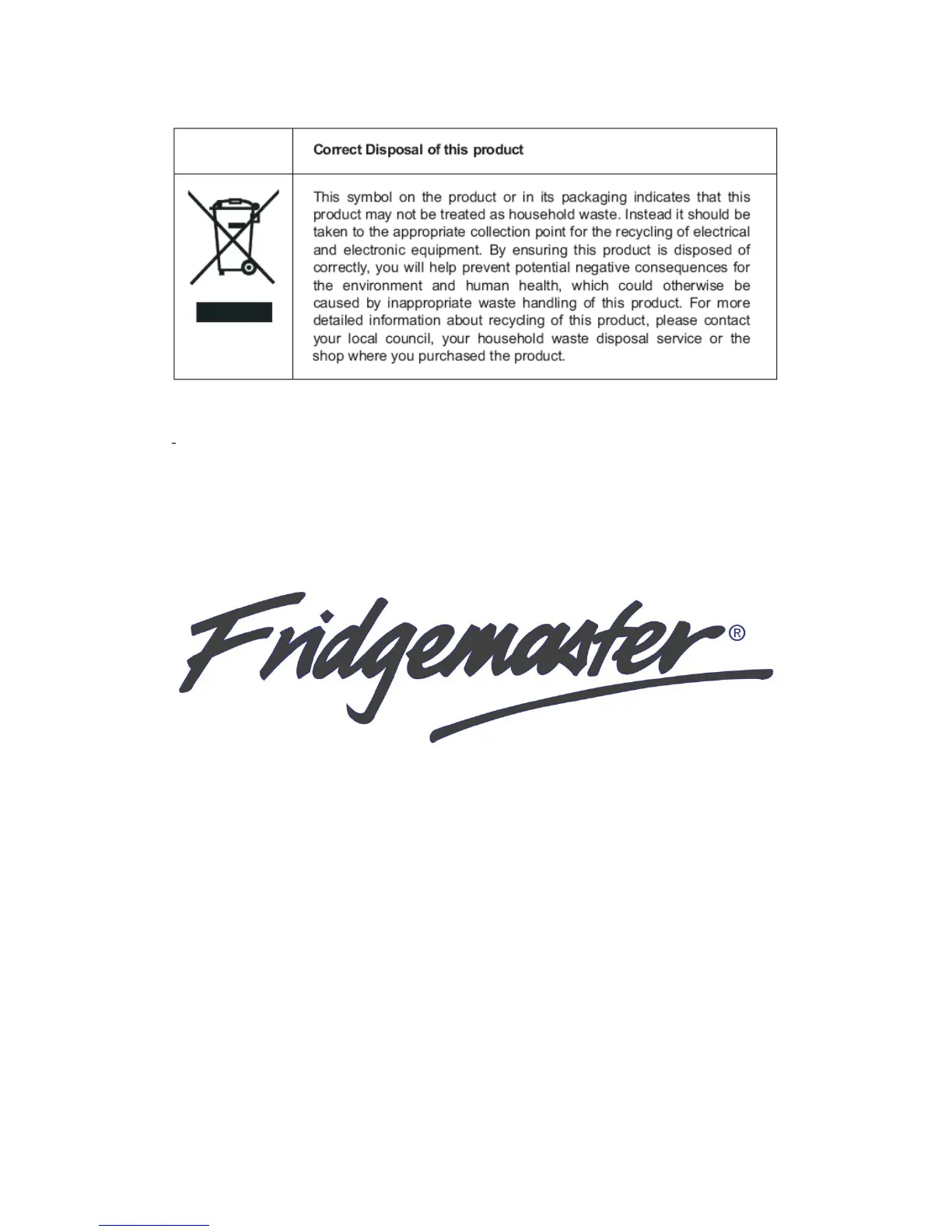 the Fridgemaster Technical Helpline on: