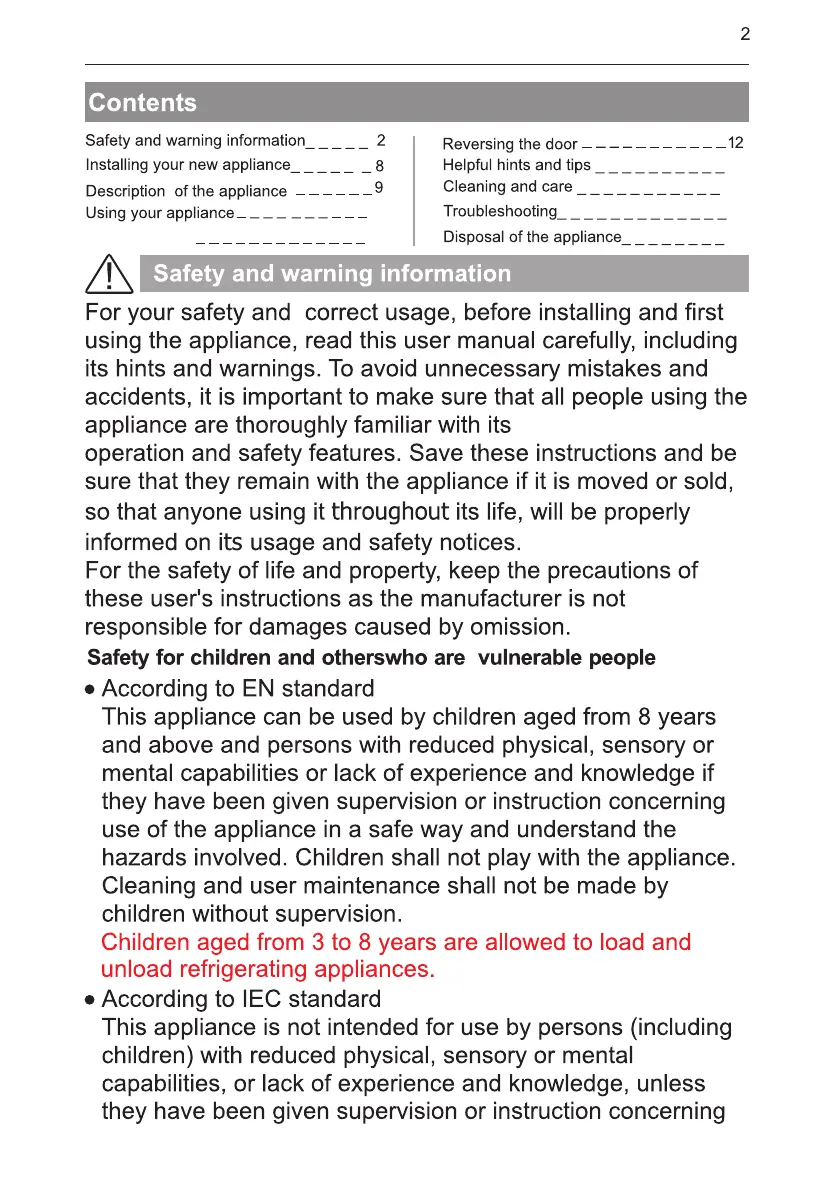 Fridgemaster MTZ55153 - Safety and Warning Information; Safety for Children and Vulnerable People