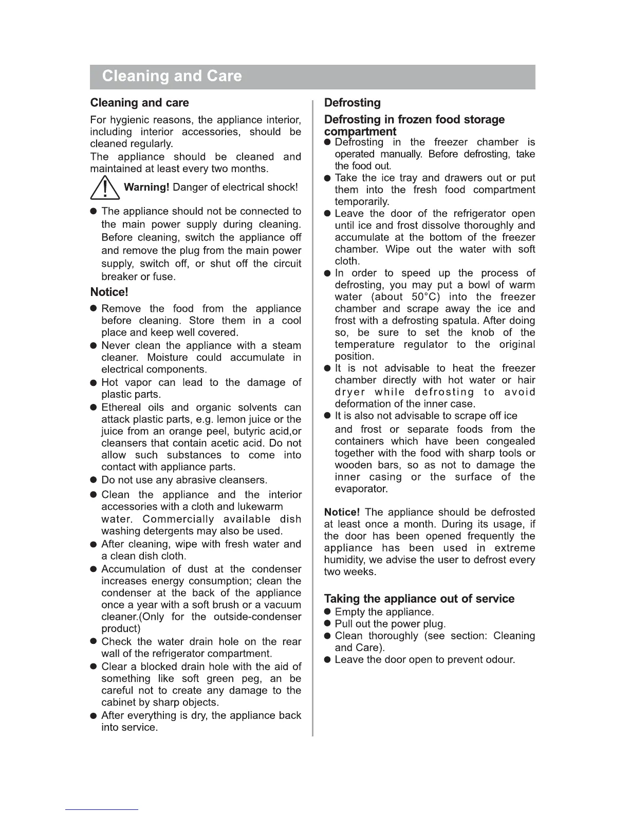Fridgemaster MUZ4965 - Maintenance and Troubleshooting; General Cleaning Instructions; Defrosting Procedure