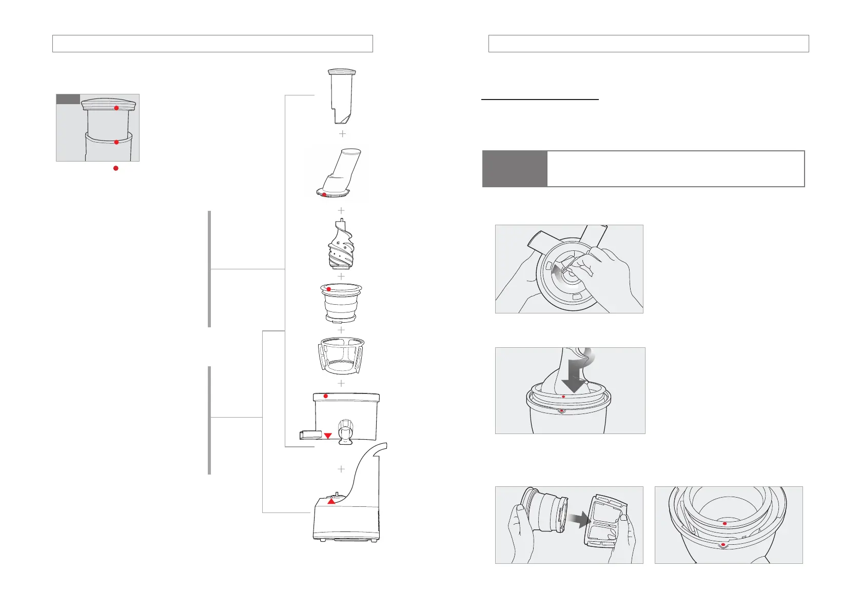 crépine soit aligné avec le rouge point sur le bol Juicing.