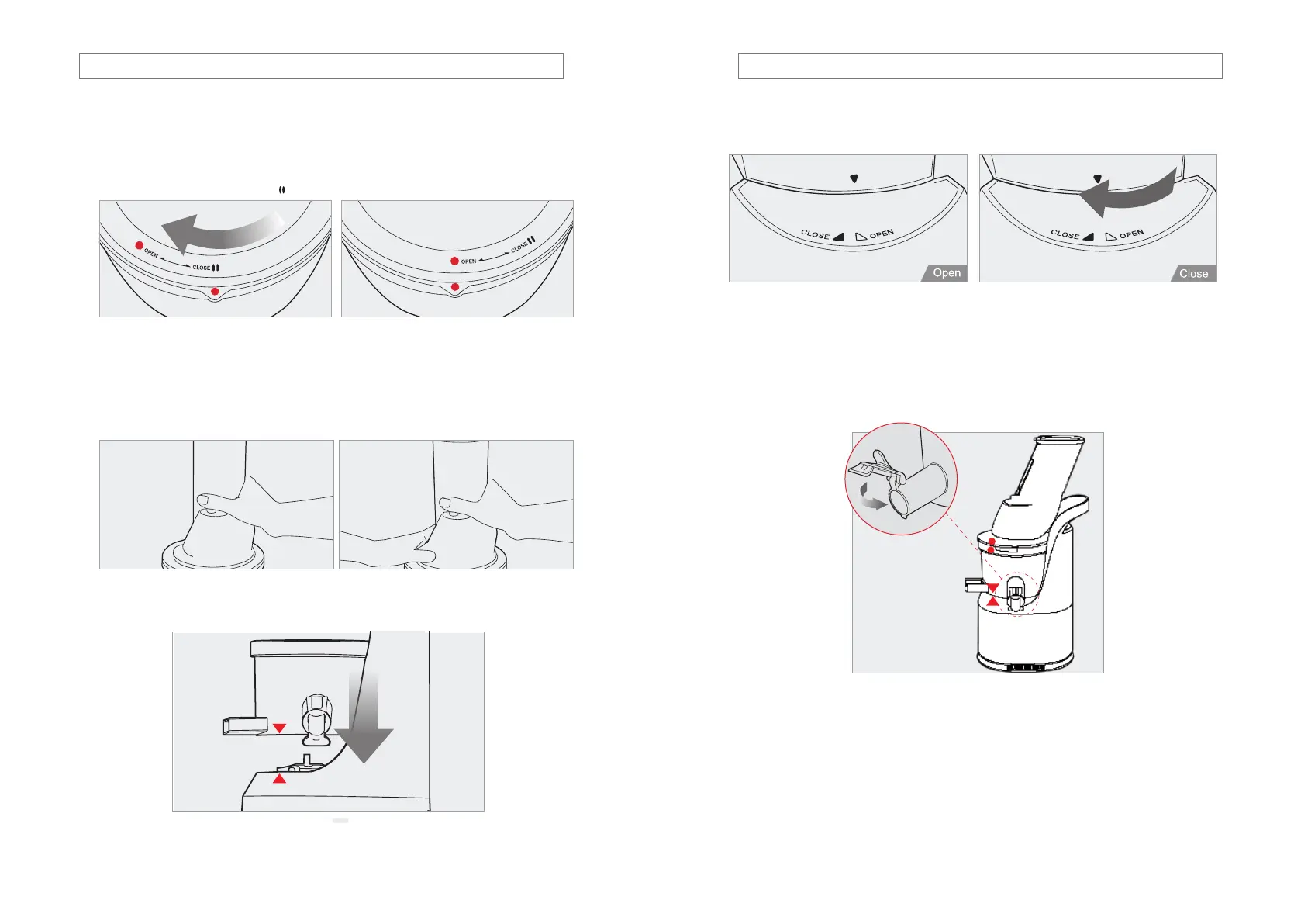 Gire hacia la derecha para cerrar, alinee el punto rojo en la cubierta del