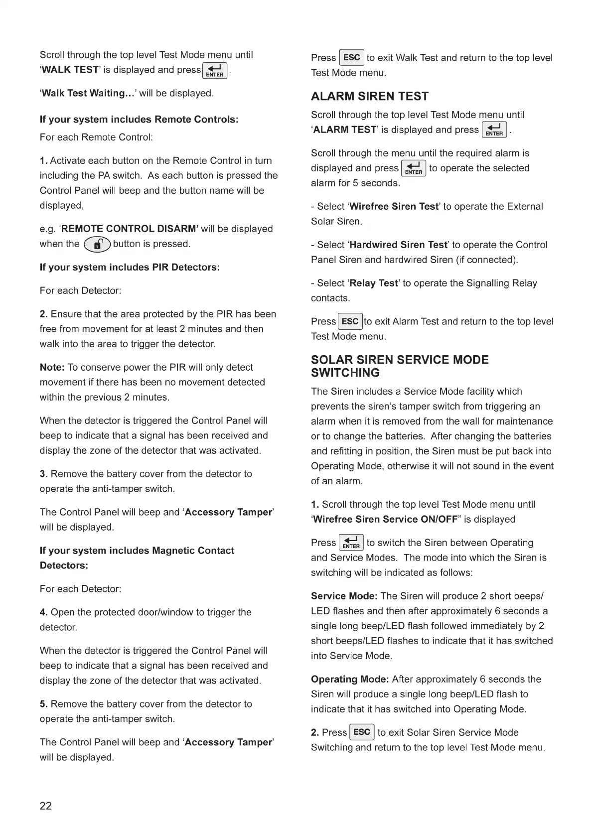 FRIEDLAND SA5 - Detector Testing Details; Remote Control Testing; PIR Detector Testing; Magnetic Contact Detector Testing