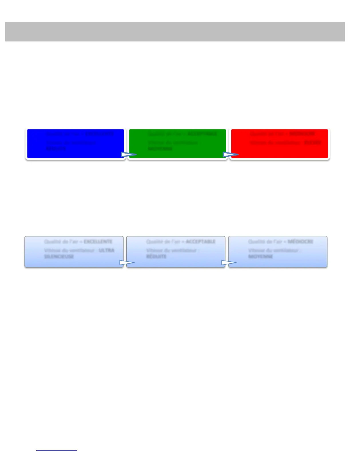 (voyant de capteur de qualité de l’air désactivé) et la vitesse du ventilateur ULTRA QUIET ou ultra