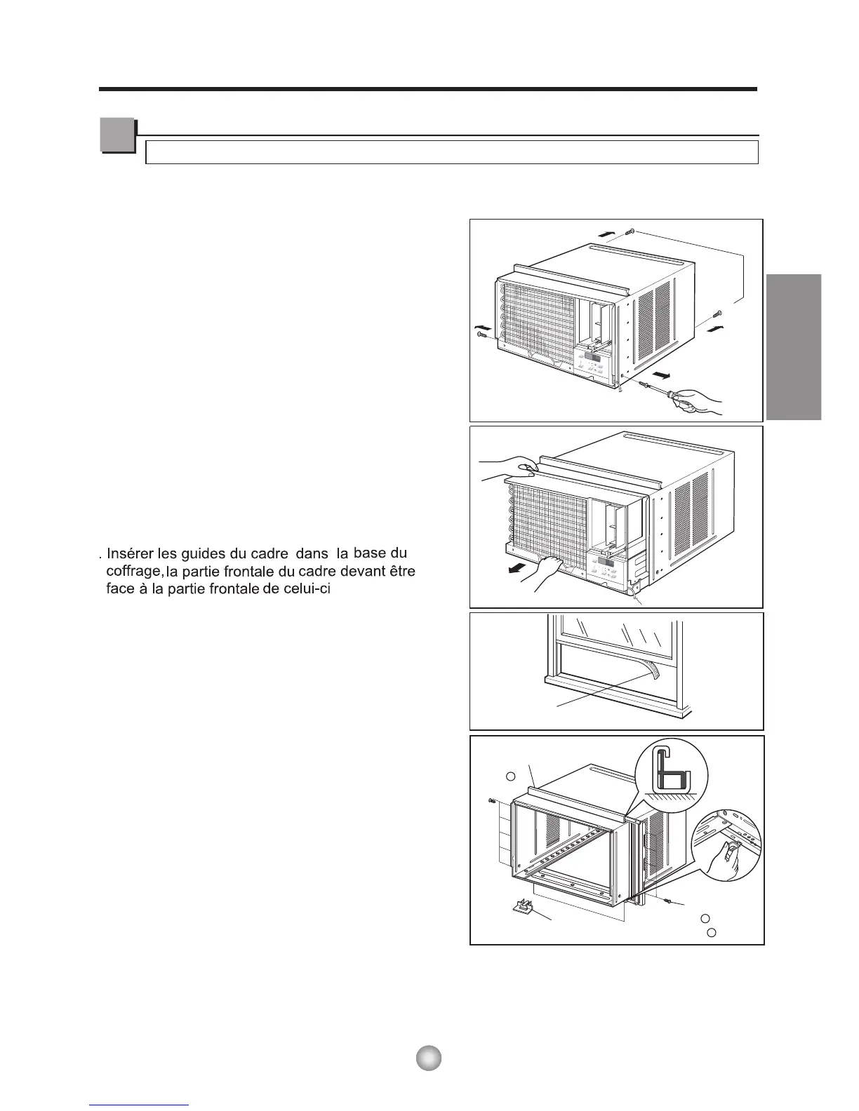 supérieur et dans les dispositifs de guidage du cadre.