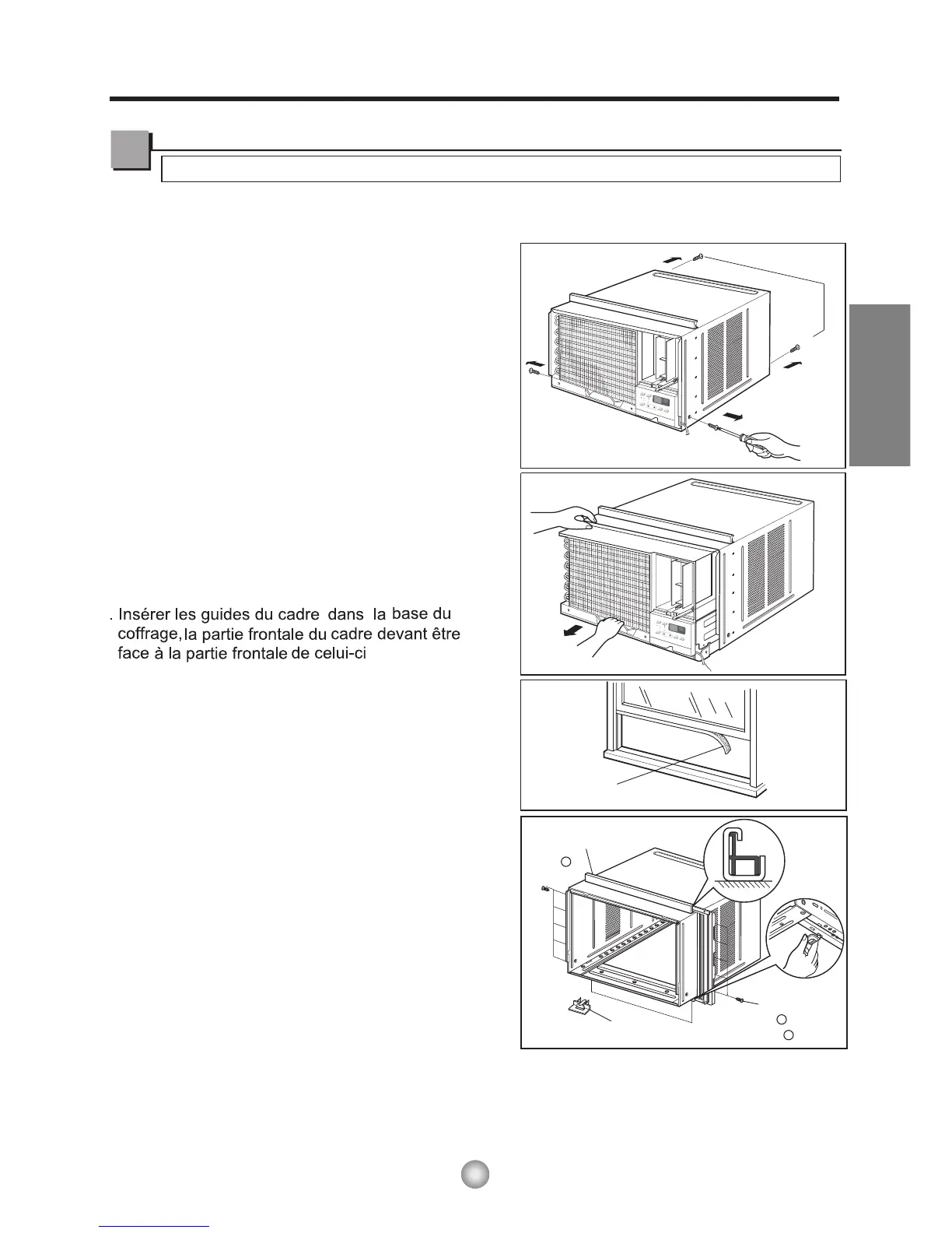 supérieur et dans les dispositifs de guidage du cadre.