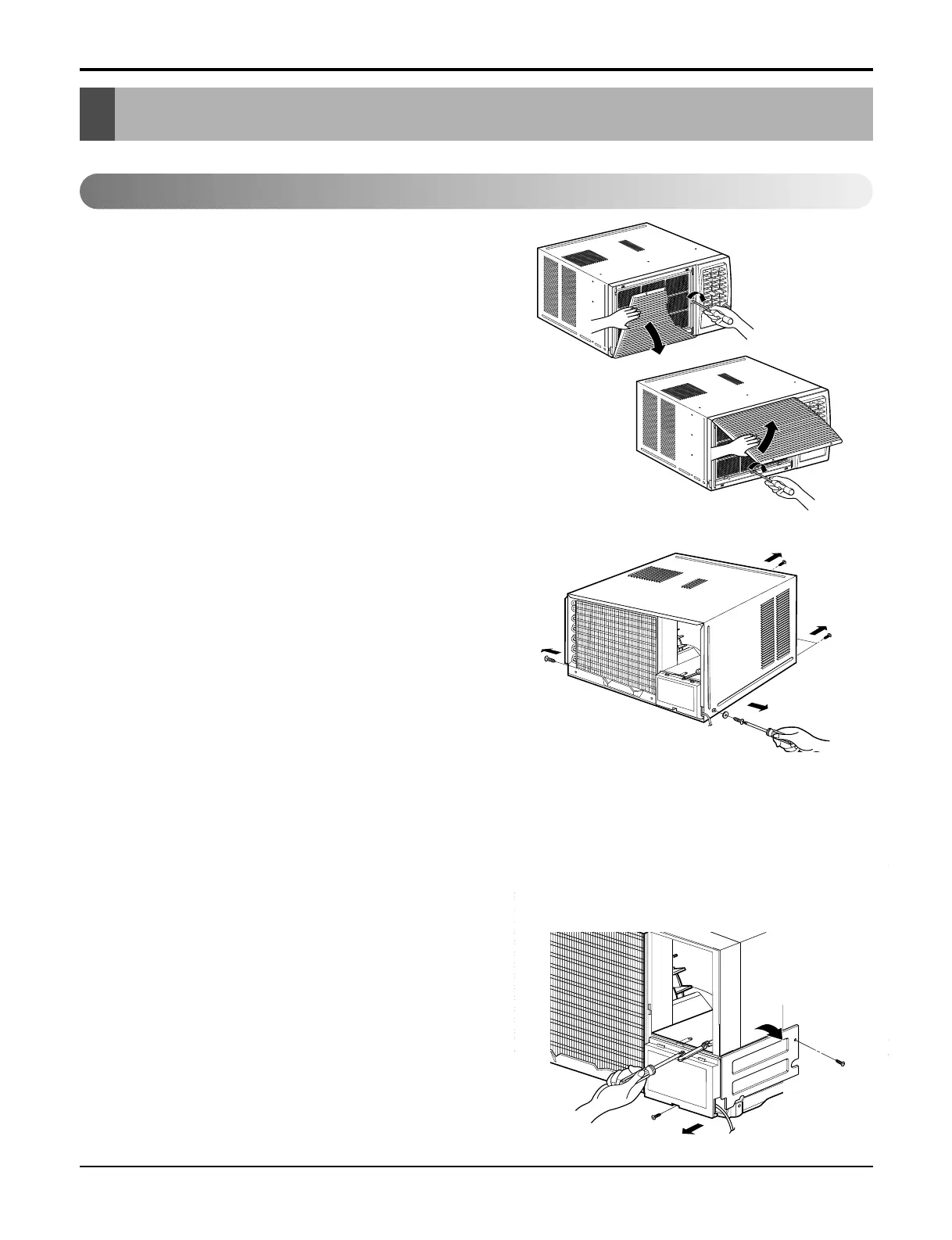 2. Remove the screw which fastens the front grille.