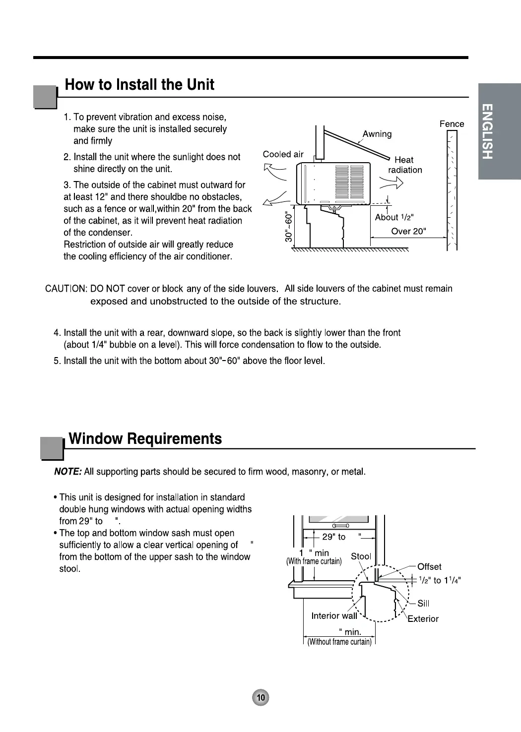 Friedrich CP18 - How to Install the Unit; Unit Installation Steps; Window Installation Requirements