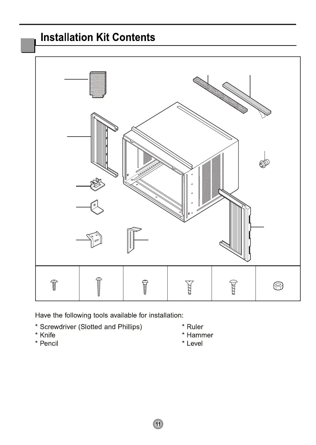Friedrich CP18 - Installation Kit Contents; Included Installation Components; Required Installation Tools