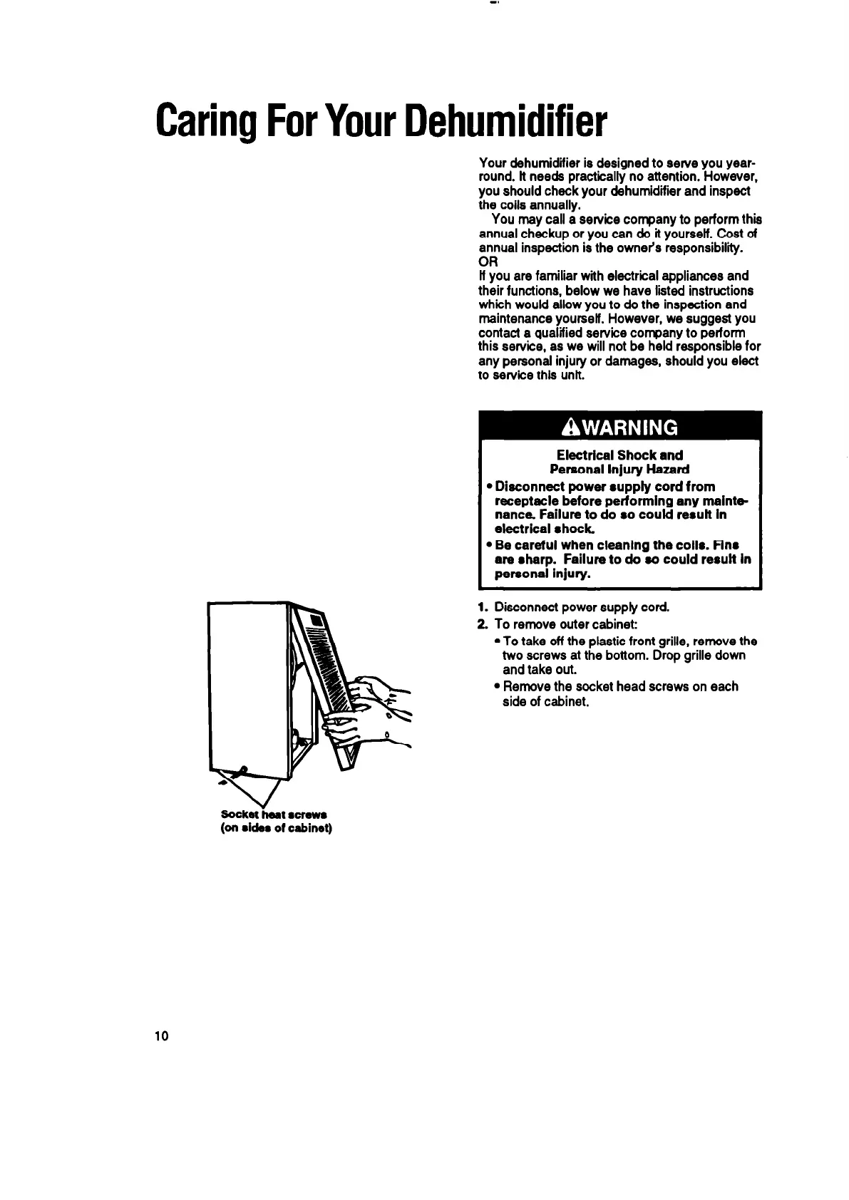 2. To remove outer cabinet: