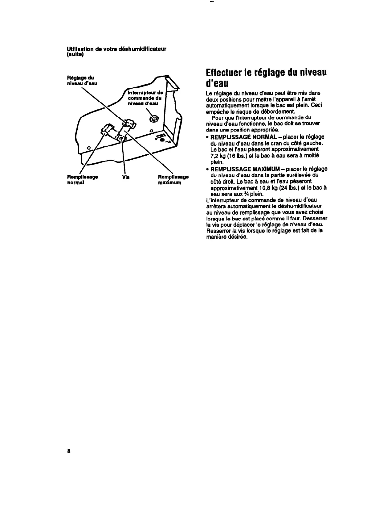 7.2 kg (16 Ibs.) et le bat & eau sera A rnoitie