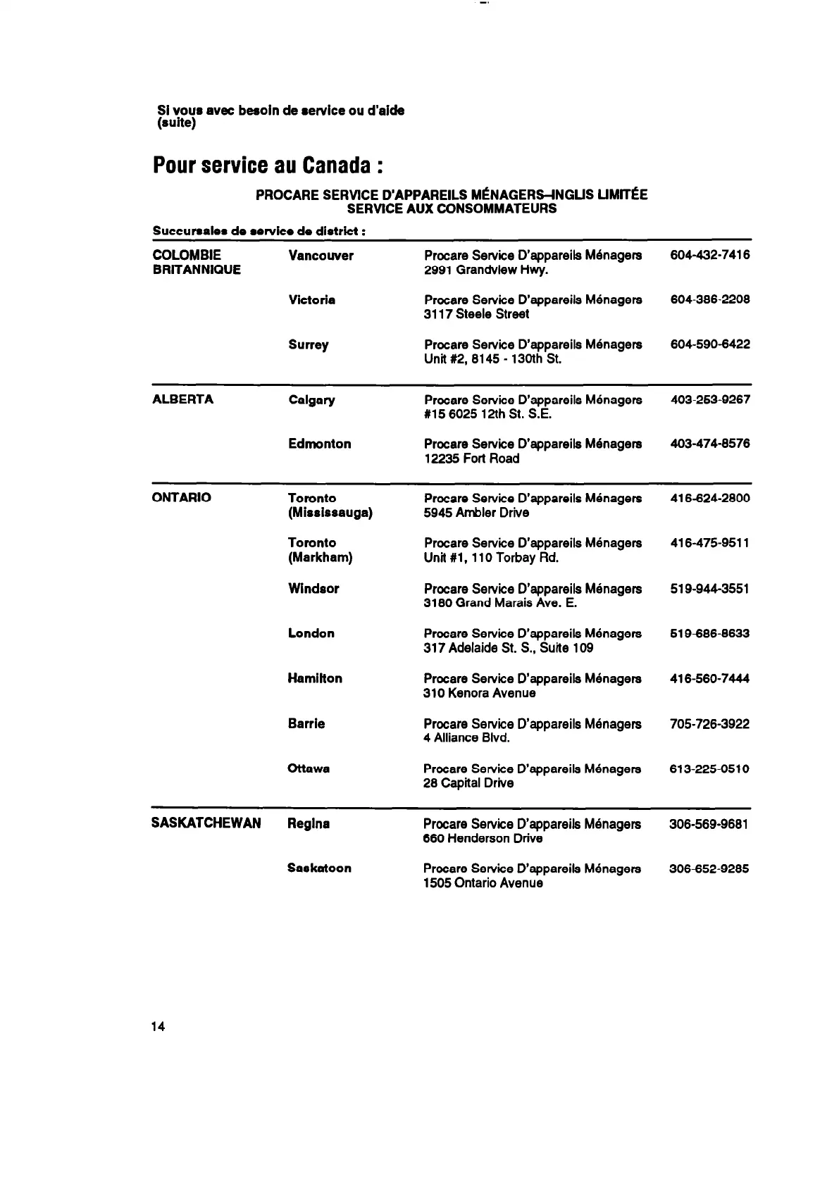PROCARE SERVICE D’APPAREILS MENAGERS-INGLIS LIMIT~E