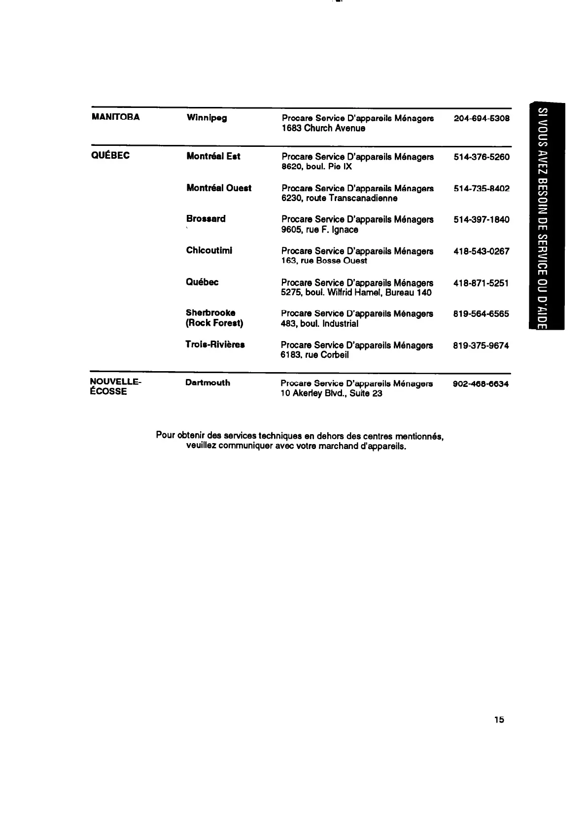 Trois-Rivi&es Procare Service D’appareils MBnagers