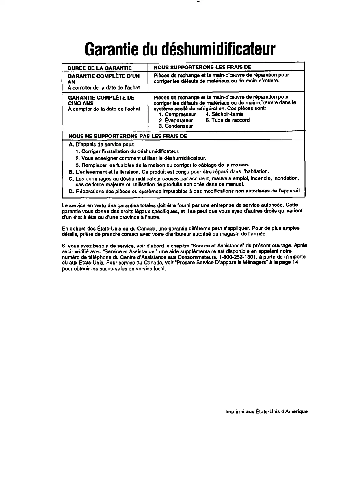 00 aux ttats-Unis. Pour service au Canada, voir “Procare Service D’appareils MBnagers” a la page 14