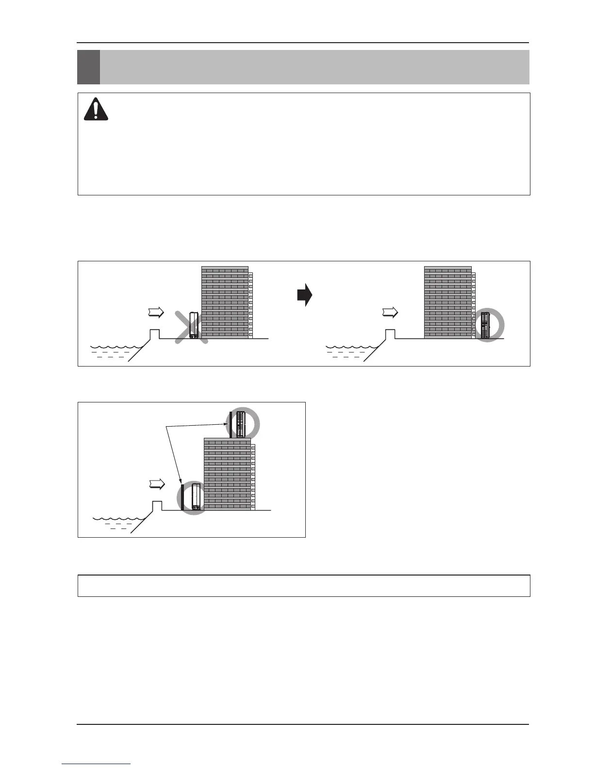 2) If outdoor unit must be installed on the seaside, set up a windbreak to limit sea wind exposure.