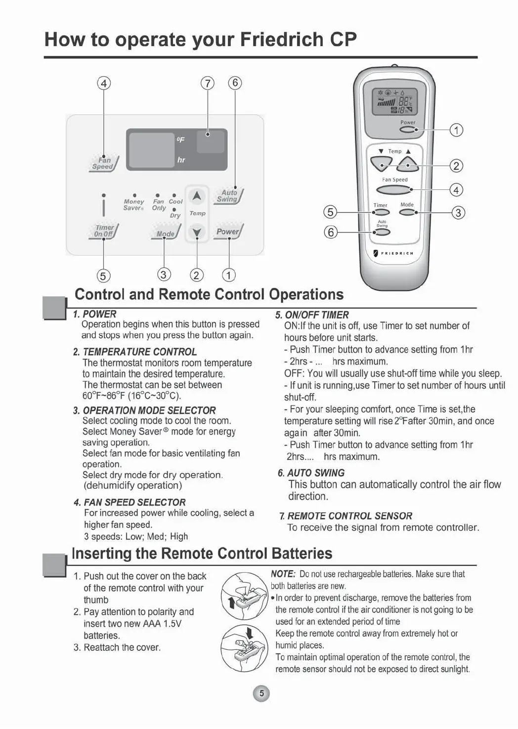 Friedrich EP18G33 - Operating Your Friedrich Air Conditioner; Control Panel and Remote Overview