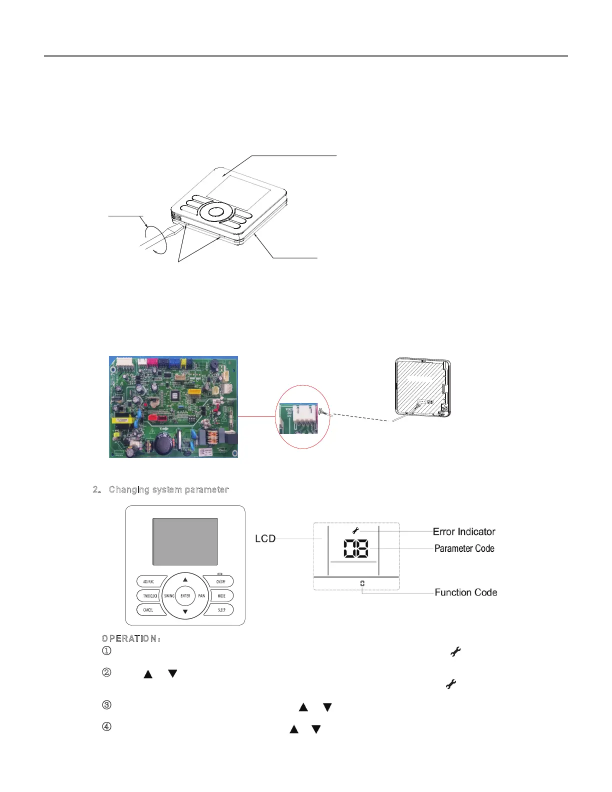 Step 1: Remo ving the upper cover of the wired controller