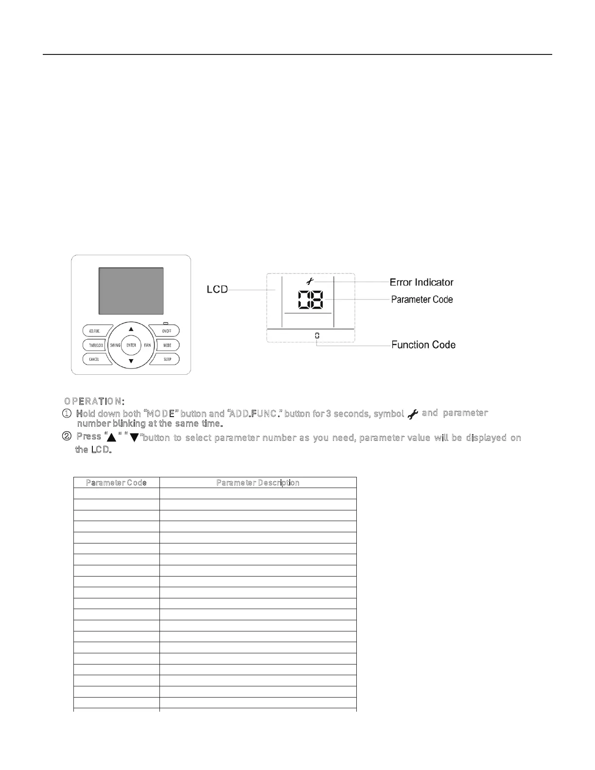 ① Hold down both “MO DE” button and “ADD.FUNC .” button for 3 seconds, symbol