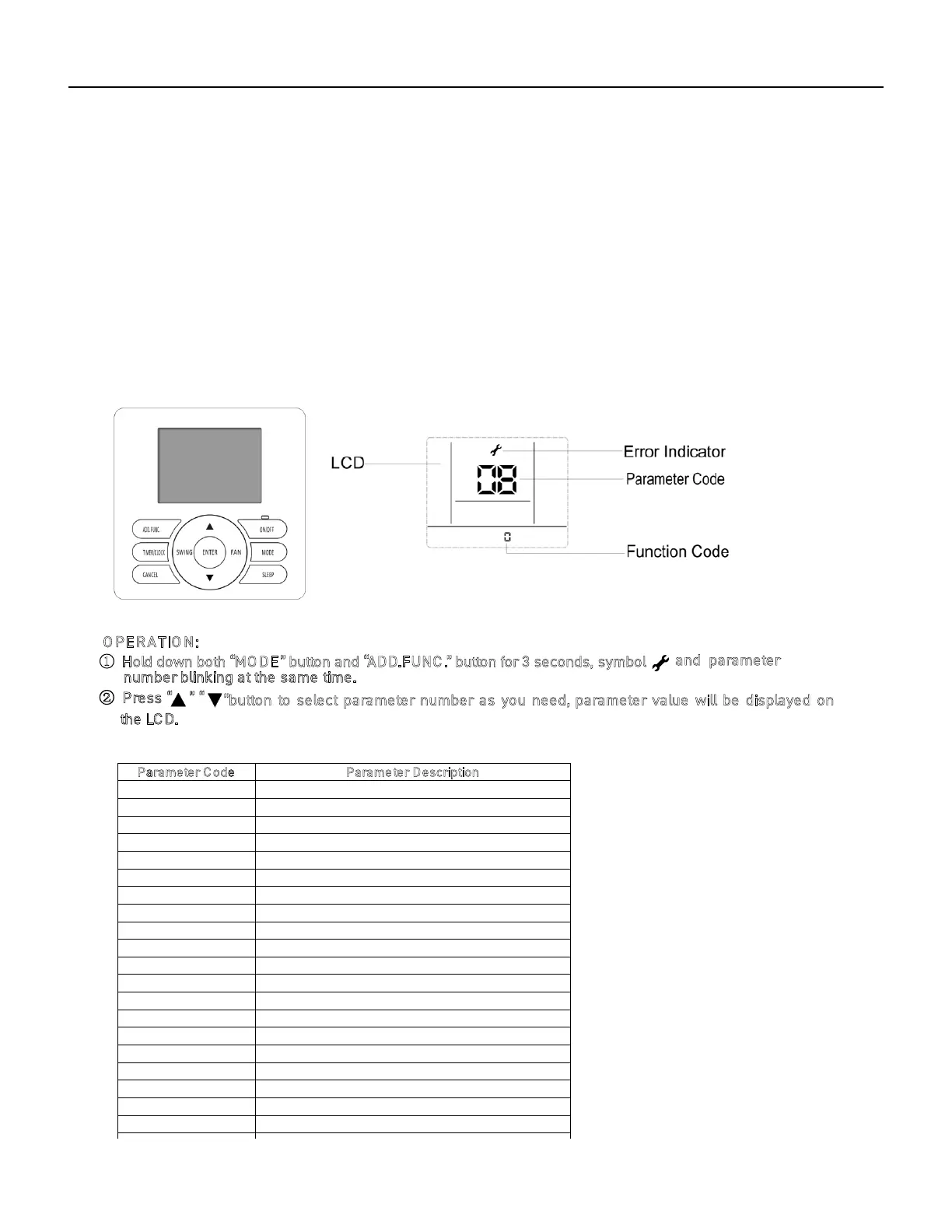 ① Hold down both “MO DE” button and “ADD.FUNC.” button for 3 seconds, symbol
