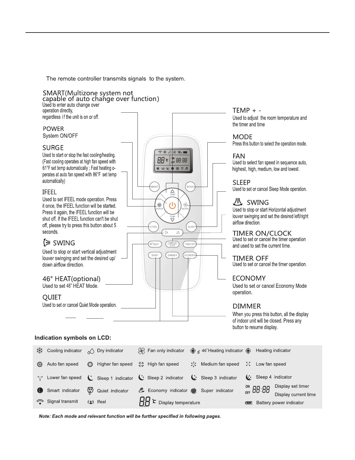 Friedrich FPHFR18A3A - Cassette Remote Control; Button Identification