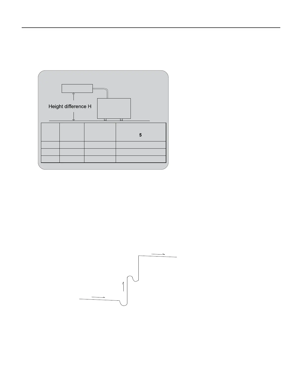 When the indoor unit is lower than outdoor unit and height difference is larger than 16.4 ft (5m),