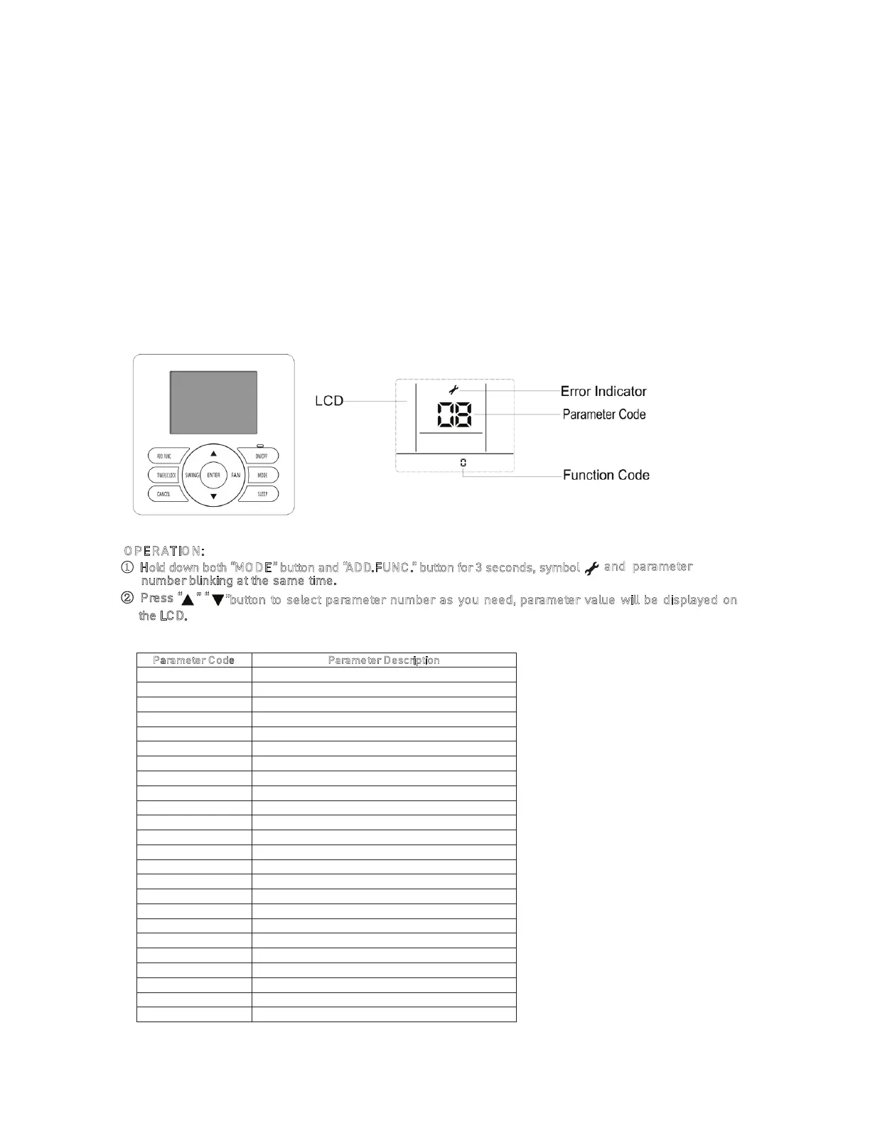 ① Hold down both “MO DE” button and “ADD.FUNC .” button for 3 seconds, symbol