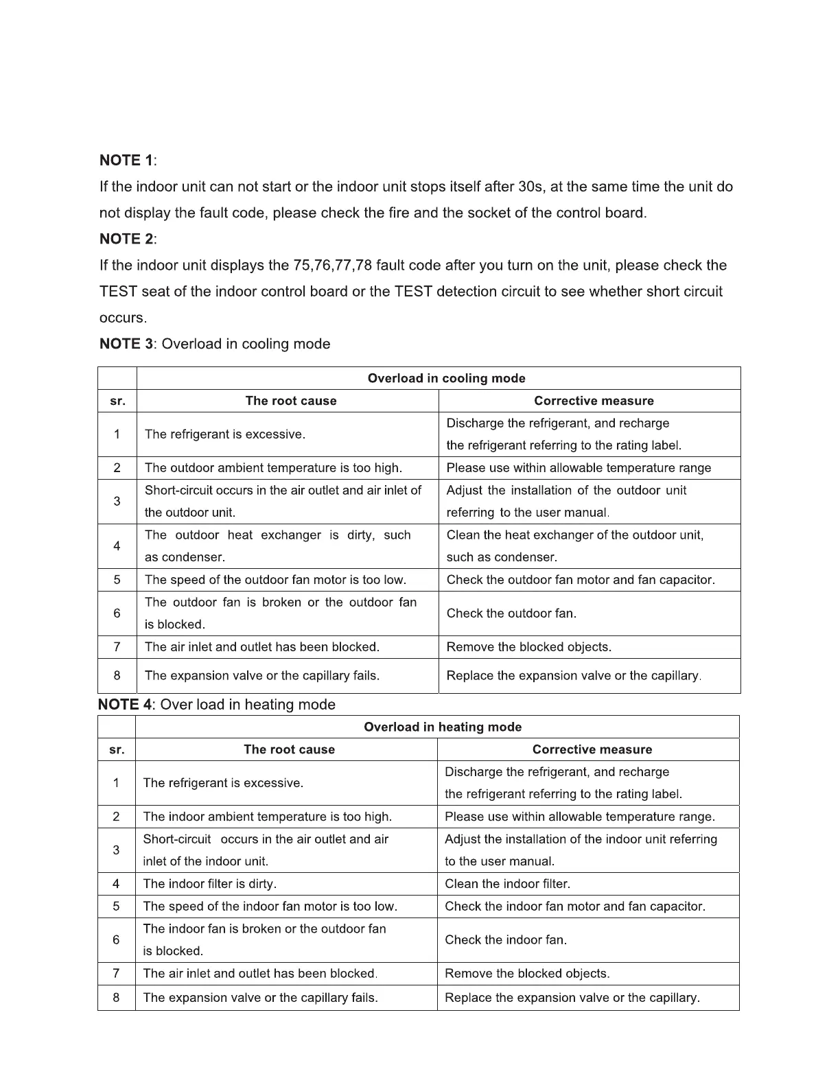 Outdoor Fault Codes