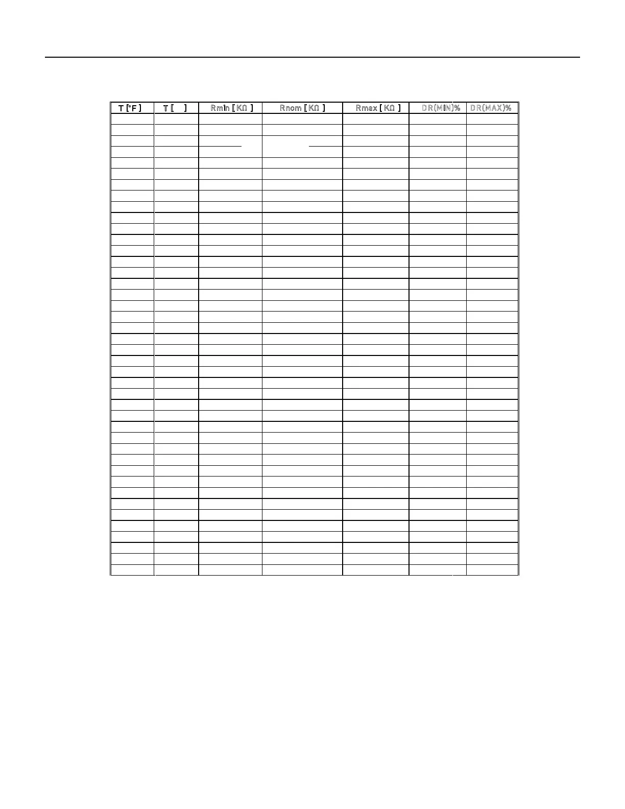 Rmin [ KΩ ] R nom [ KΩ ] Rmax [ KΩ ] D R(MIN)% D R(MAX)%