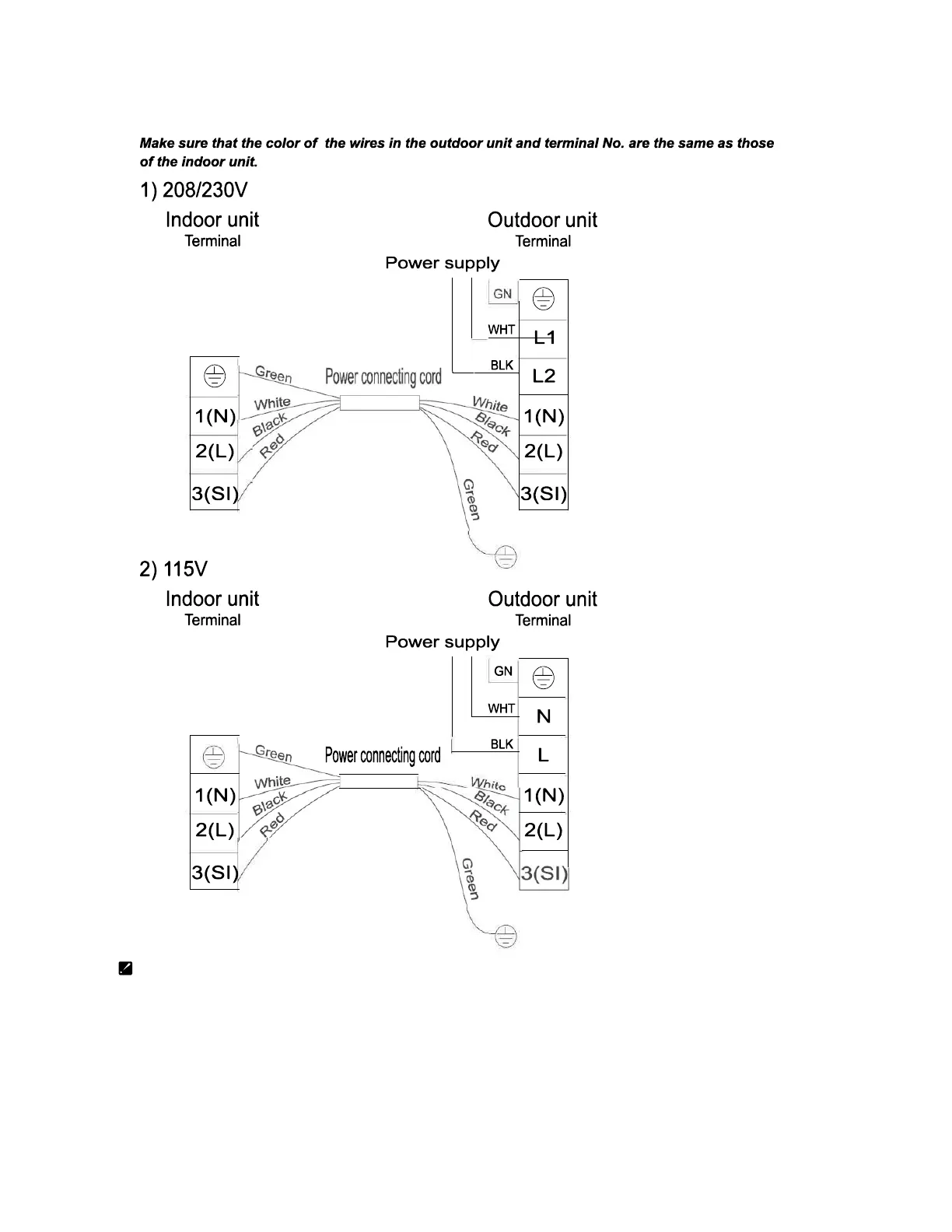 Indoor Unit Wiring Connection Diagram