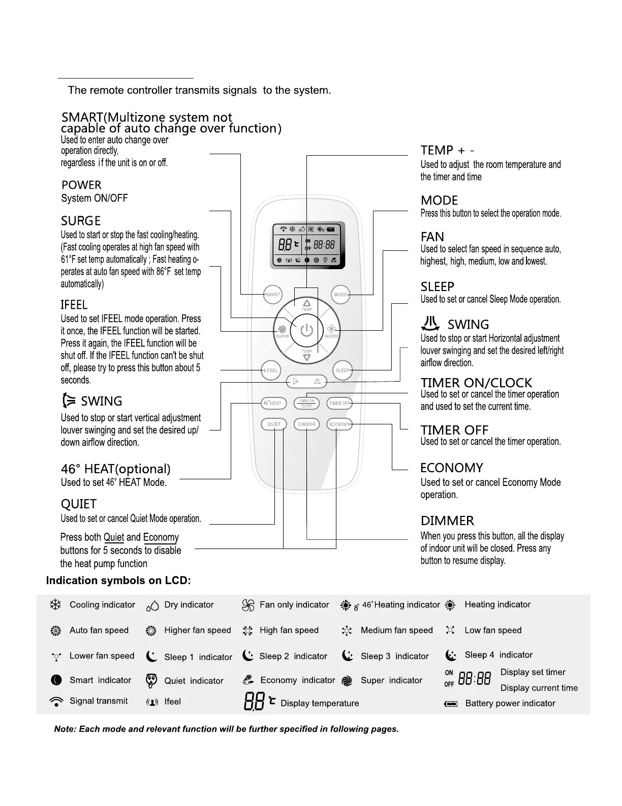 Friedrich FPHW093B - Remote Control
