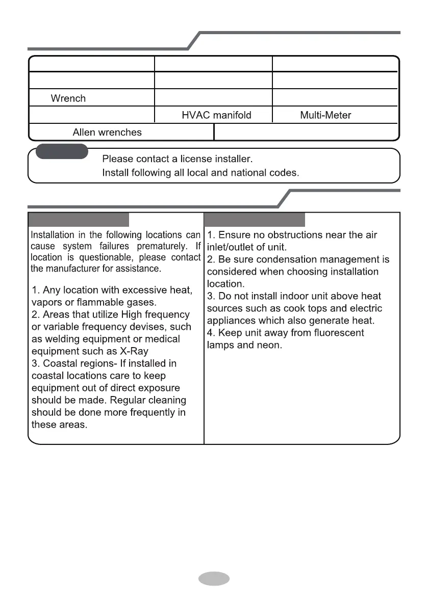 Friedrich FSHSW18A3A - Tools for Installation; Selection of Installation Location