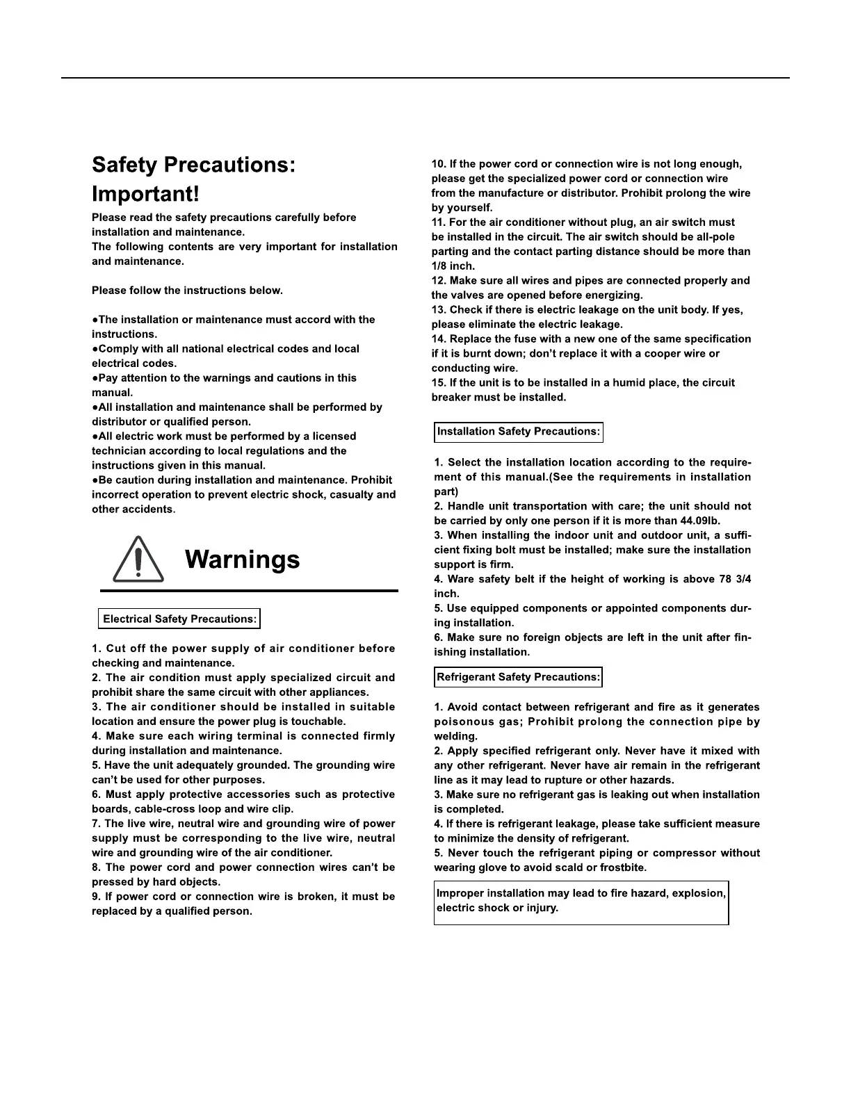 Friedrich FSHW091 - Installation Procedures; Installation Safety and Requirements