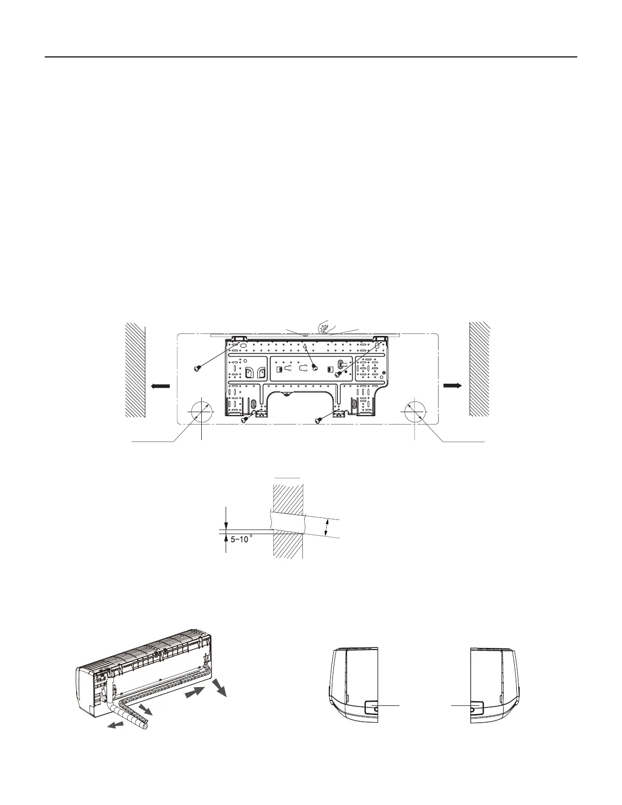 piping hole on the wall slightly downward to the outdoor side with the gradient of 5‑10°.(As show in Fig.2)