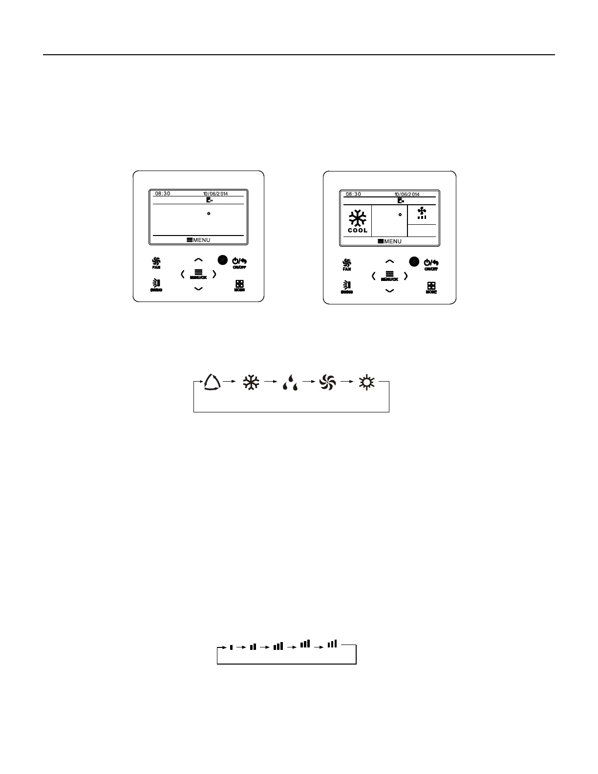 Under On status, pressing FAN button can set fan speed circularly as: