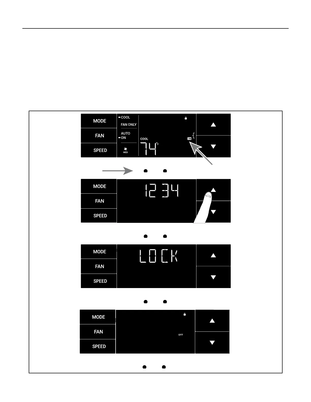 The ON on the right side of the display shows the lock function is active. To go back into the menu, select the menu button
