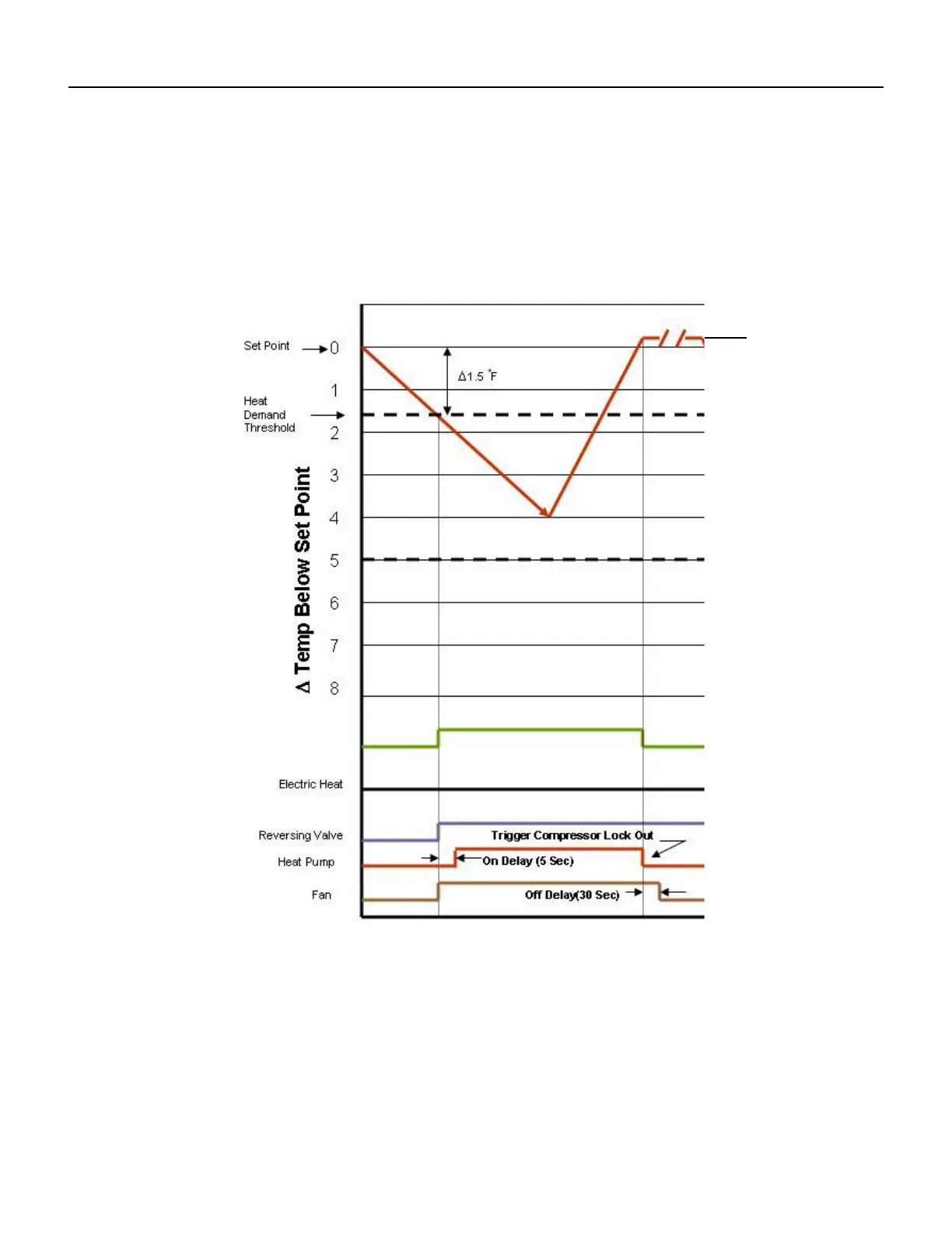 (1.5 ˚F Below the Heat Set Point Temperature), the heating cycle begins. The fan is turned on 5 seconds before.