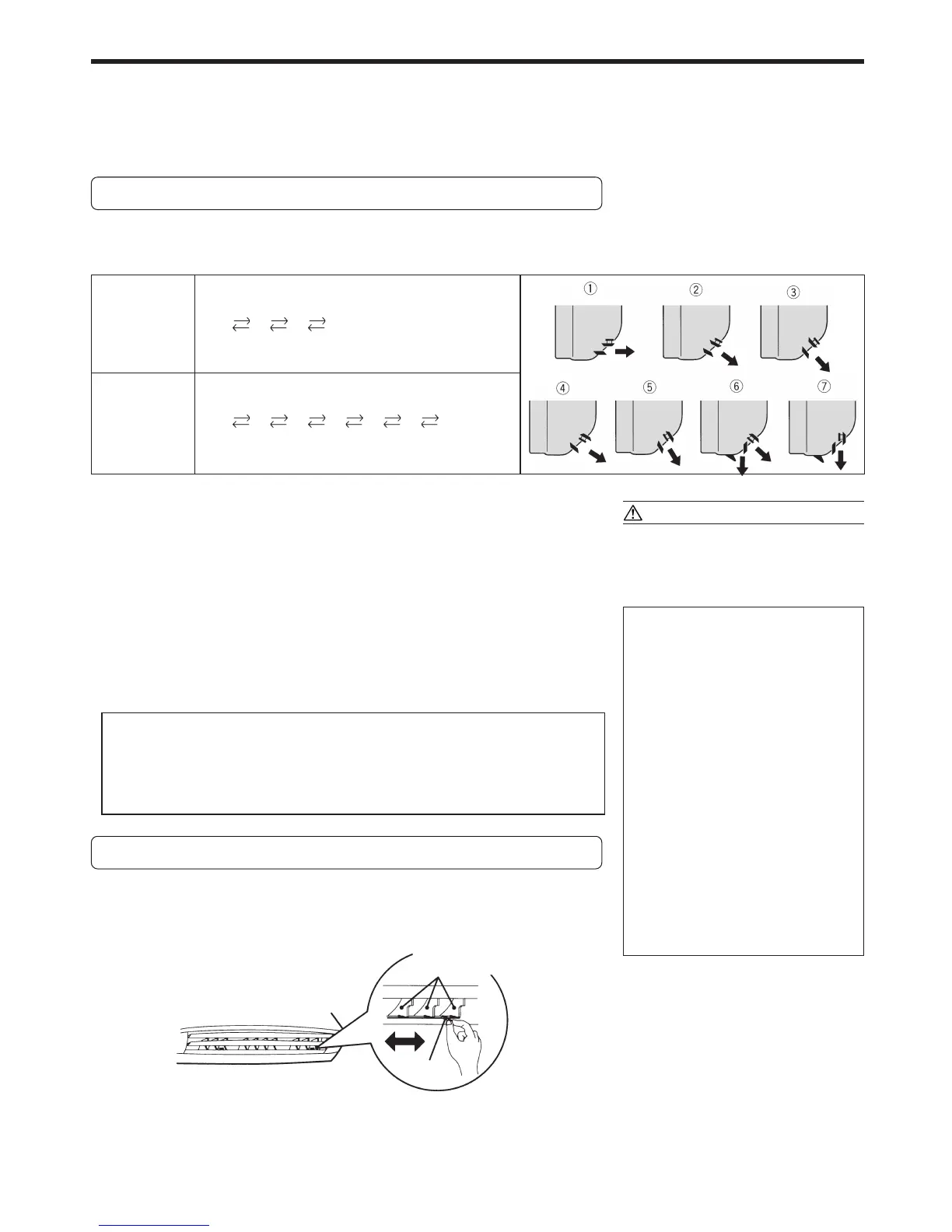 Whenever making horizontal airflow adjustments, start air conditioner operation and be sure that the vertical air direction