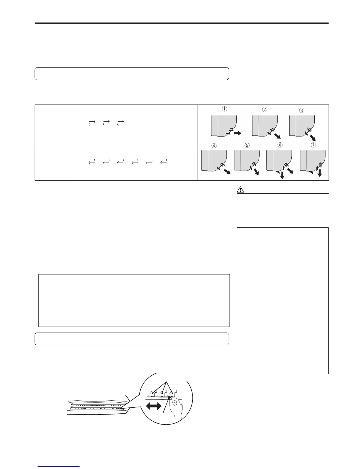 Avant d’ajuster le flux d’air dans le sens horizontal, mettez le climatiseur en marche et assurez-vous que les volets de direction