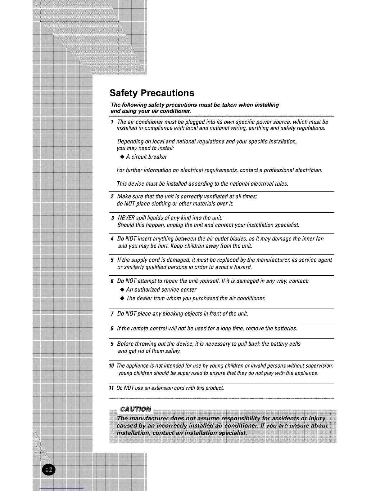 I Theairconditionermustbepluggedintoitsownspecificpowersource, whichmustbe