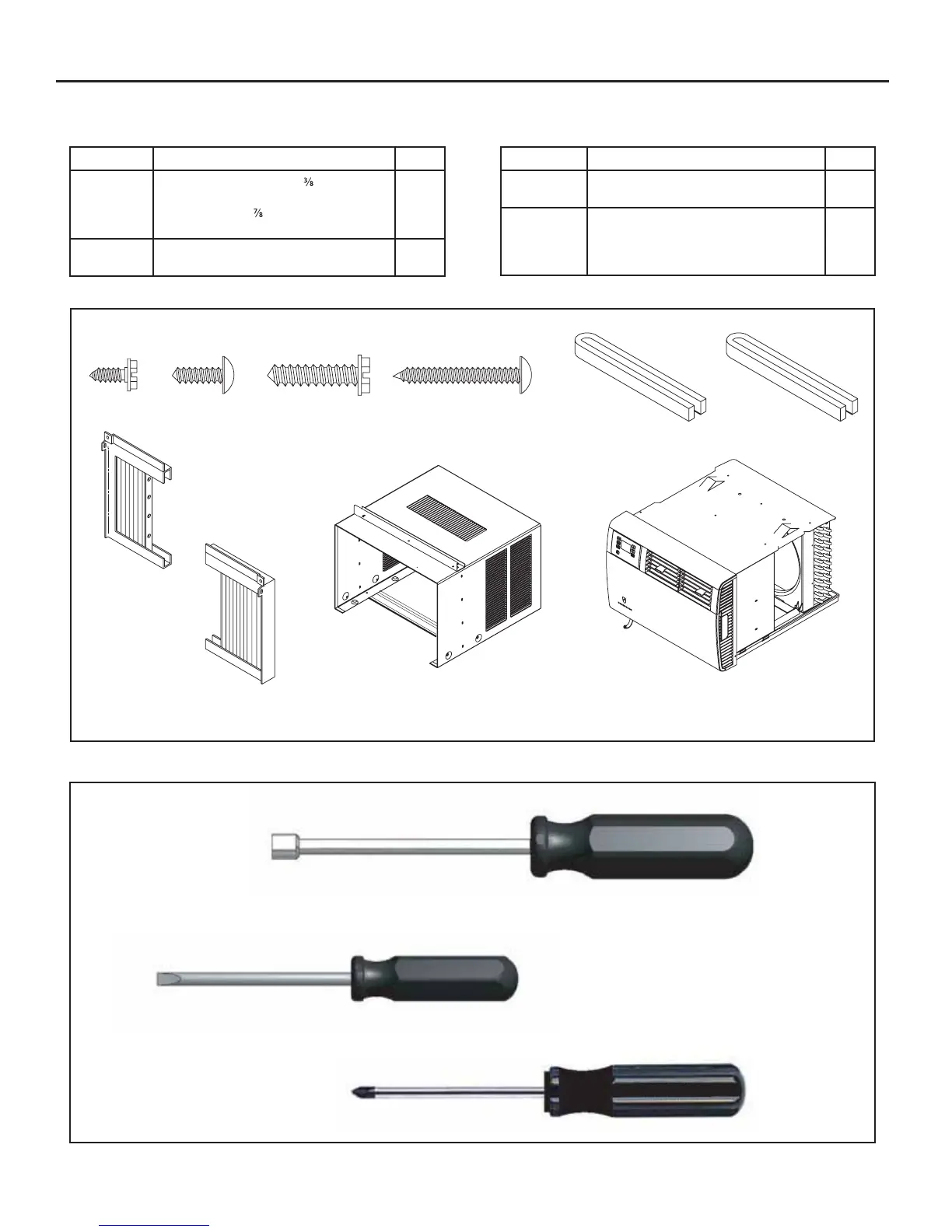 Recommended tools required for installation: (not included)
