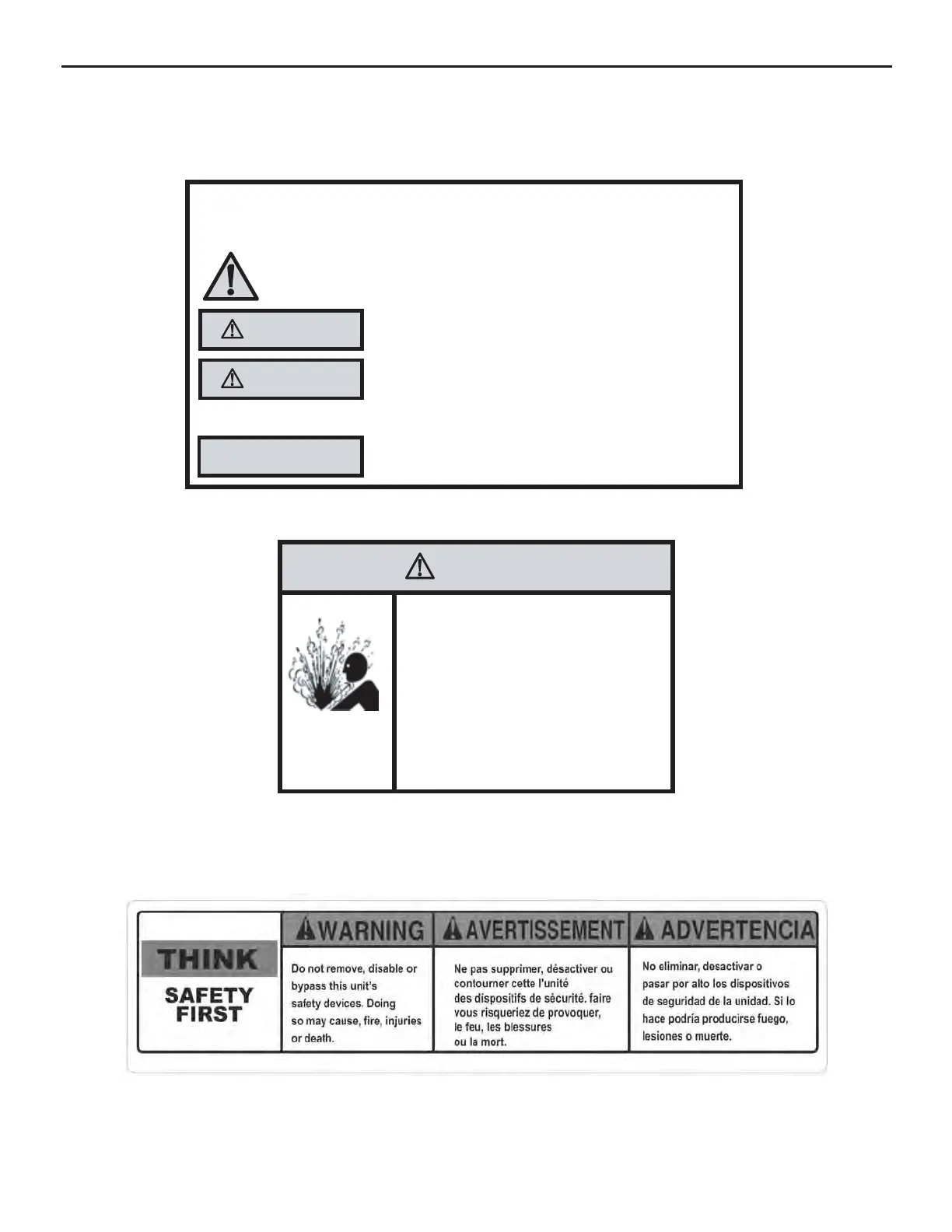 Todos los mensajes de seguridad le seguirán al símbolo de alerta de seguridad con la palabra "ADVERTENCIA" o