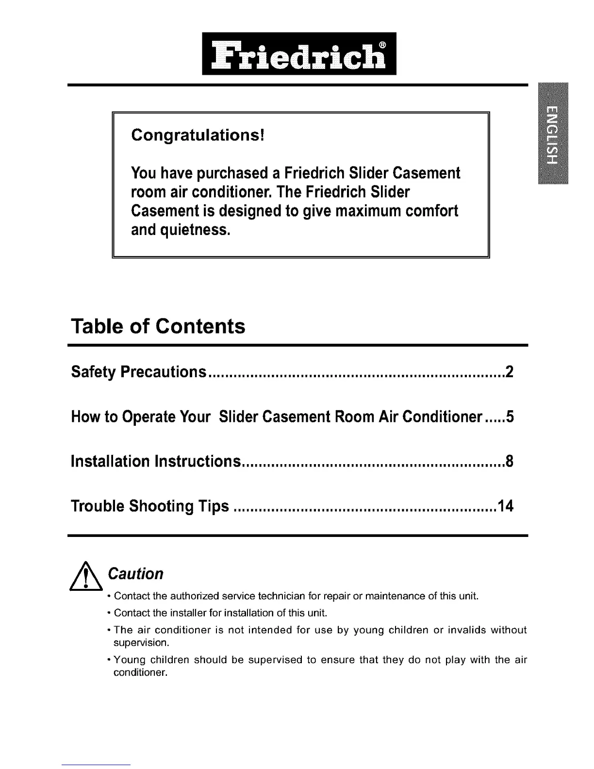Howto OperateYour SliderCasementRoomAir Conditioner.....5