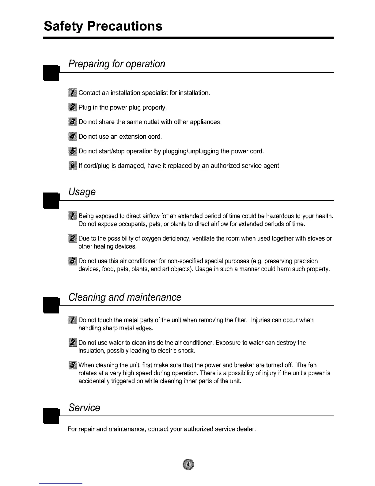 Donot usethisair conditioner for non-specified special purposes (e.g. preserving precision