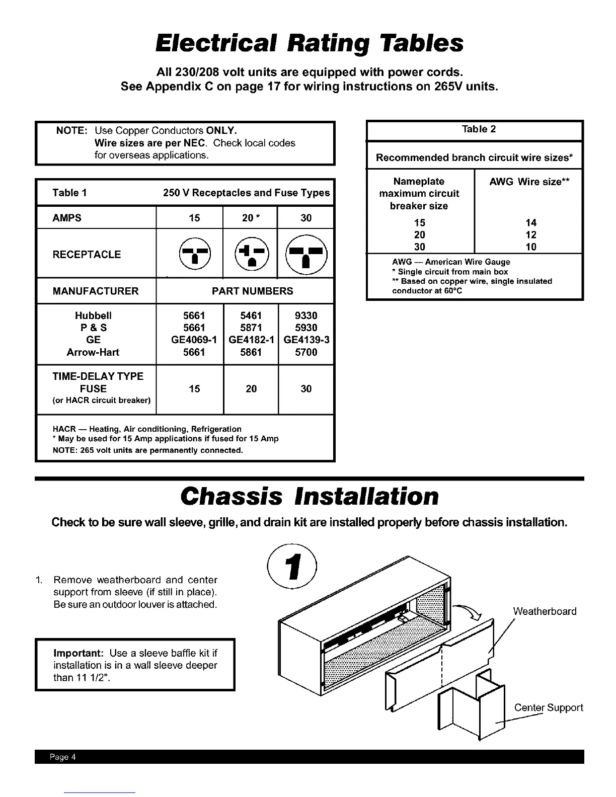 See Appendix C on page 17 for wiring instructions on 265V units.