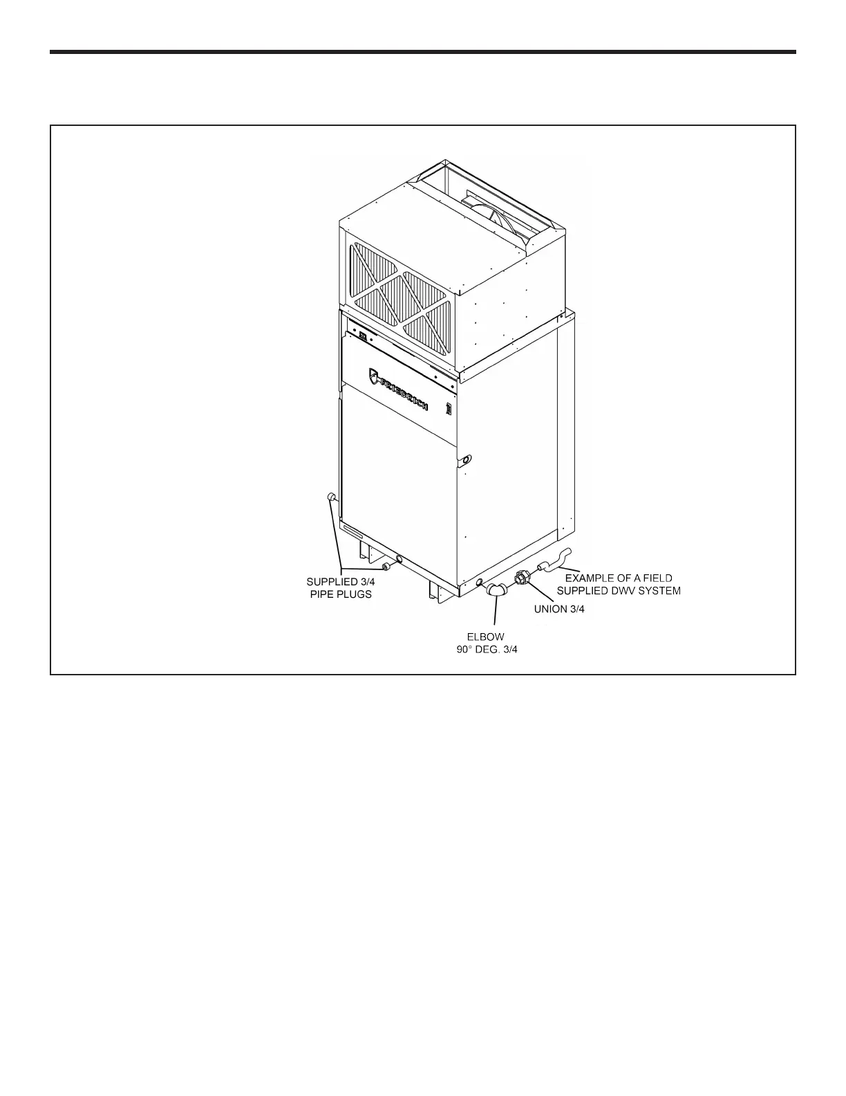 1) Connect the supplied drain kit must be connected to one of the three (left, right or rear) 3/4” FPT connections on