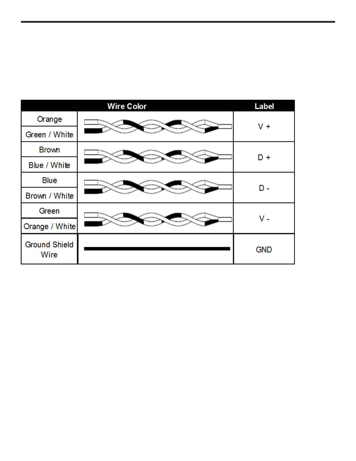 Use shielded and stranded CAT 6 cable with twisted pairs to wire the wall controller. Use the wire colors with