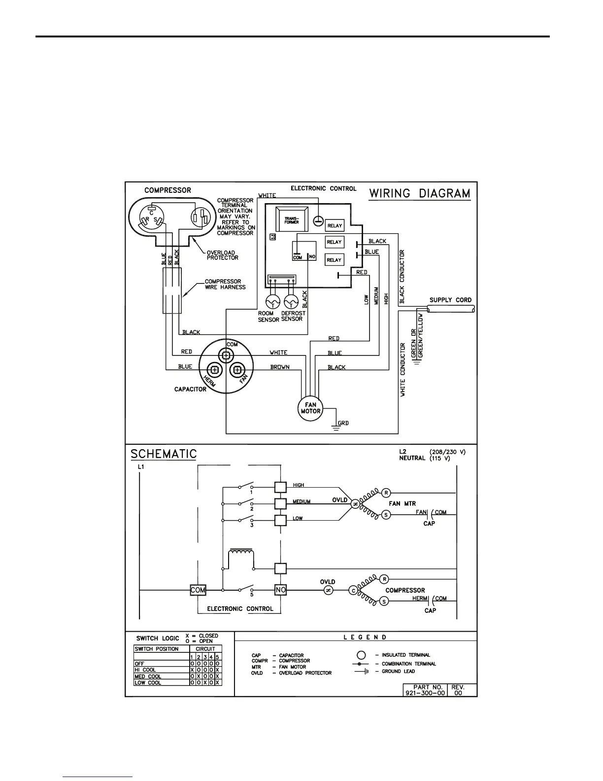 Friedrich WallMaster 2009 - WallMaster Wiring Diagram: Electronic Control (Cool Only Models)